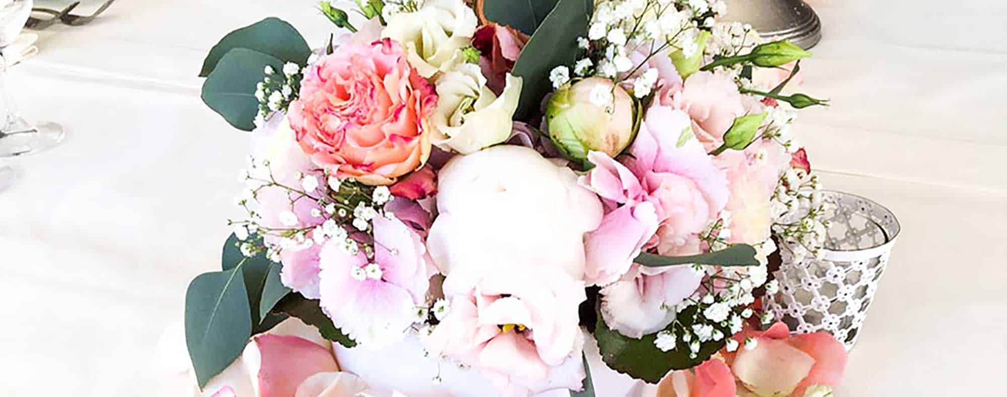 Ob in einzelnen Blüten, als Blumengestecke oder in kunstvoll kreierten Arrangements; ob aus Frischblumen oder Naturmaterialien, kombiniert mit Motto- oder zu dem Brautpaar passenden Lieblingselementen: Tischdekorationen tragen den roten Faden einer Hochzeit hinein in das Festlokal. Nebst Ihren Wünschen orientieren wir uns beim Gestalten einer Tischdekoration an der Atmosphäre des Saals, der Farben von Tischtuch und Servietten sowie an der Jahreszeit. Und noch ein Tipp aus unserem Blumenkästchen: Tischnummern helfen den Gästen, ihren Platz wiederzufinden. Auch in fortgeschrittener Feierlaune.